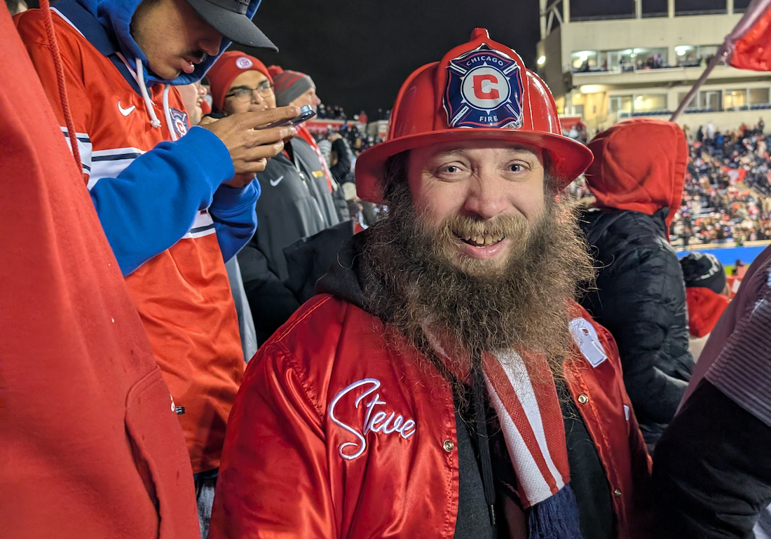 At 7:30 we shuffled into the stadium, and the supporters’ section was jumping! The Fire had scored three before the 68th minute, keeping fans out of their seats. It was the first playoff match in eight years, and sharing it with fellow long-waiting fans made it special. No matter how the season ends, it’s been an incredible ride, full of hope for the future.